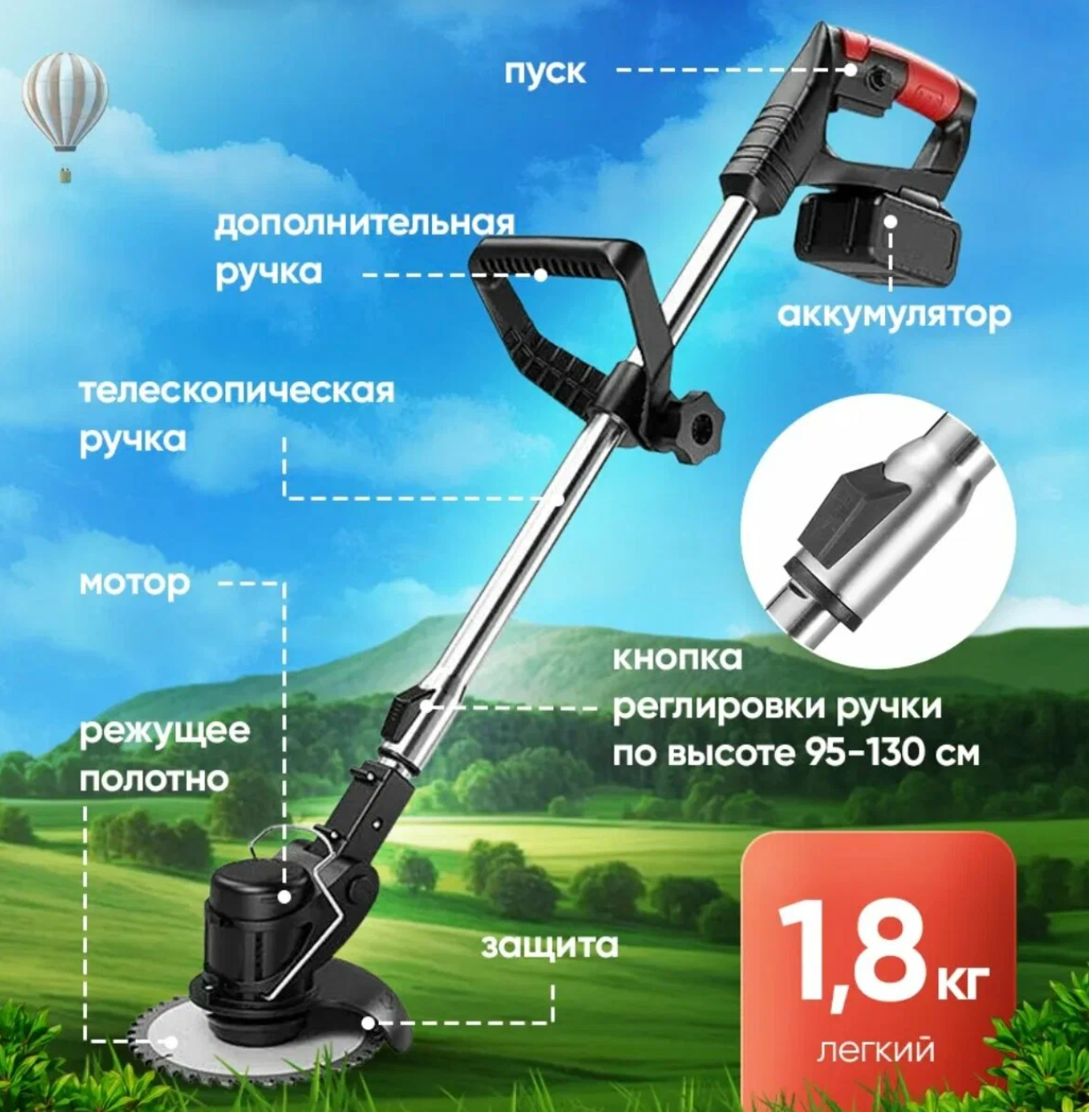 Аккумуляторный триммер для травы
